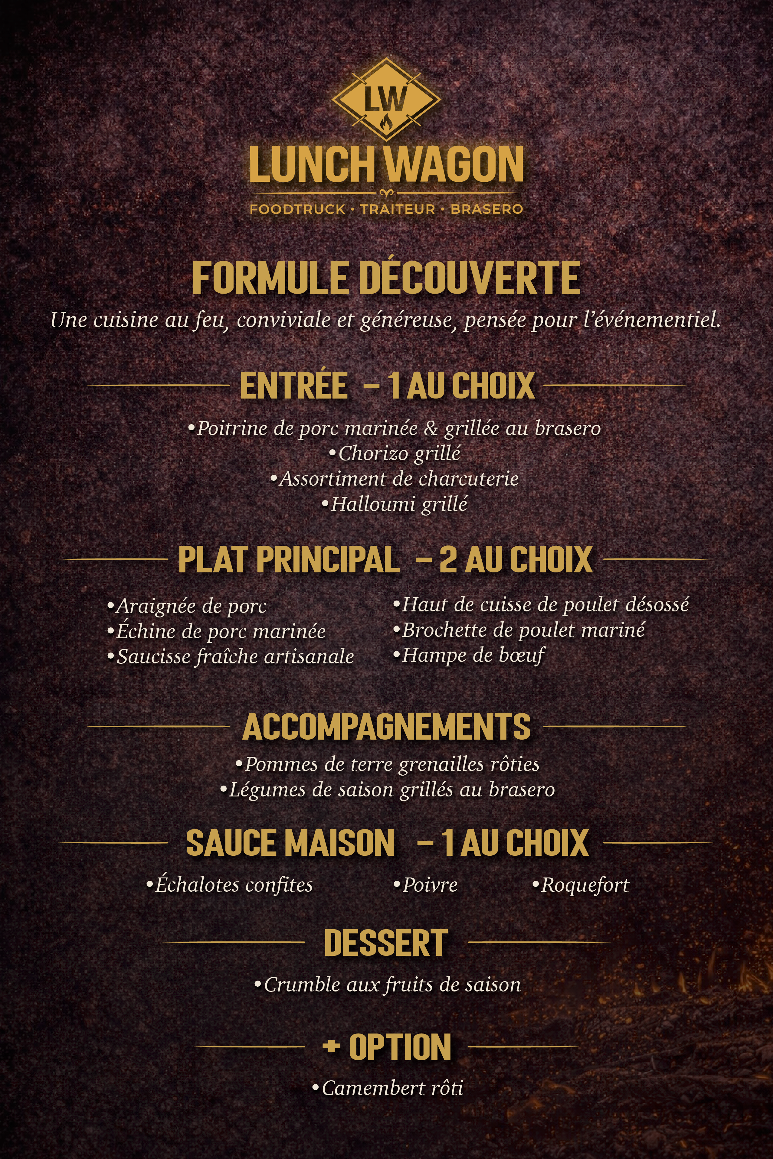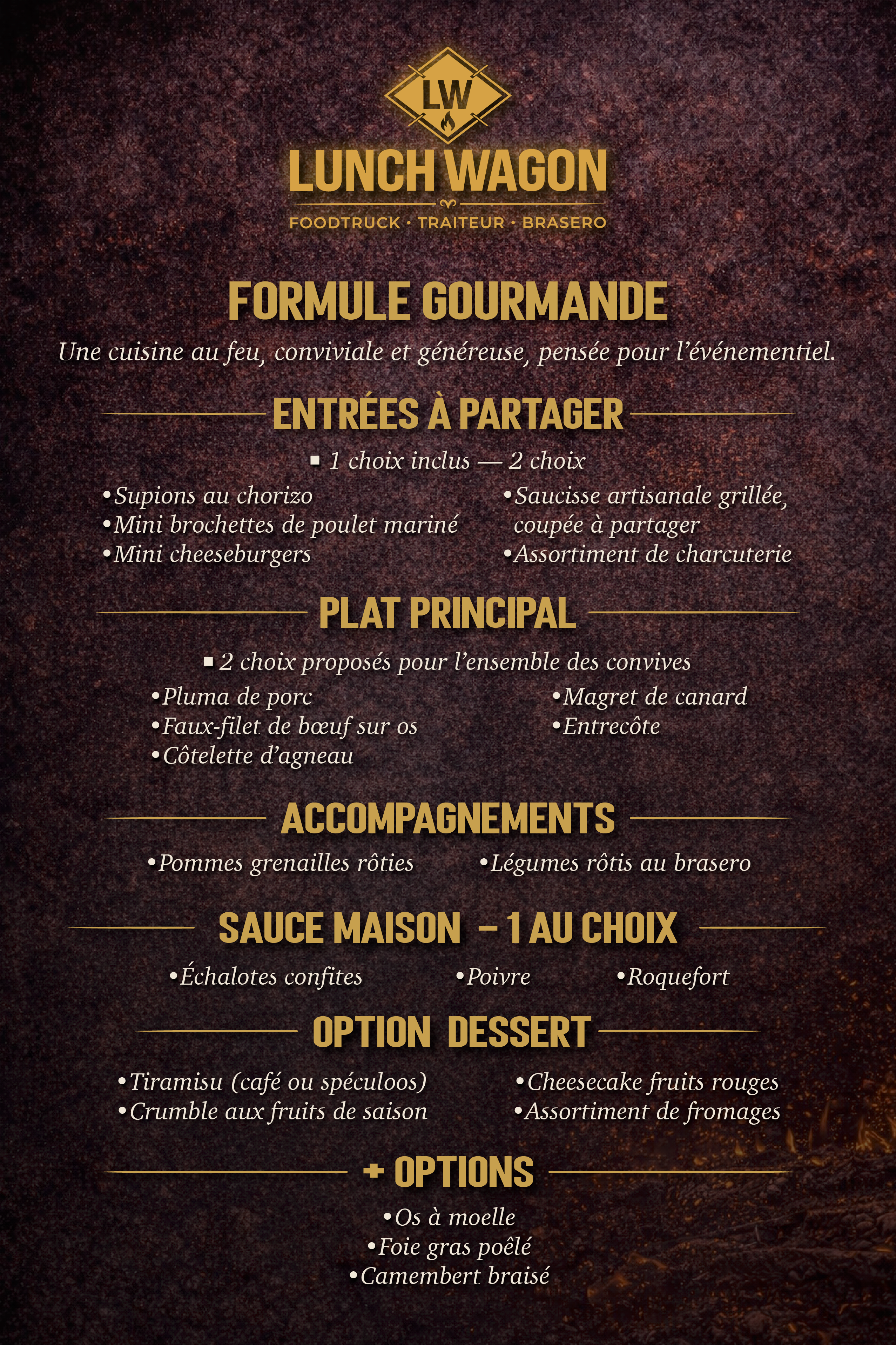 Pour s’adapter à chaque réception, LUNCH WAGON à Albi propose plusieurs formules brasero.